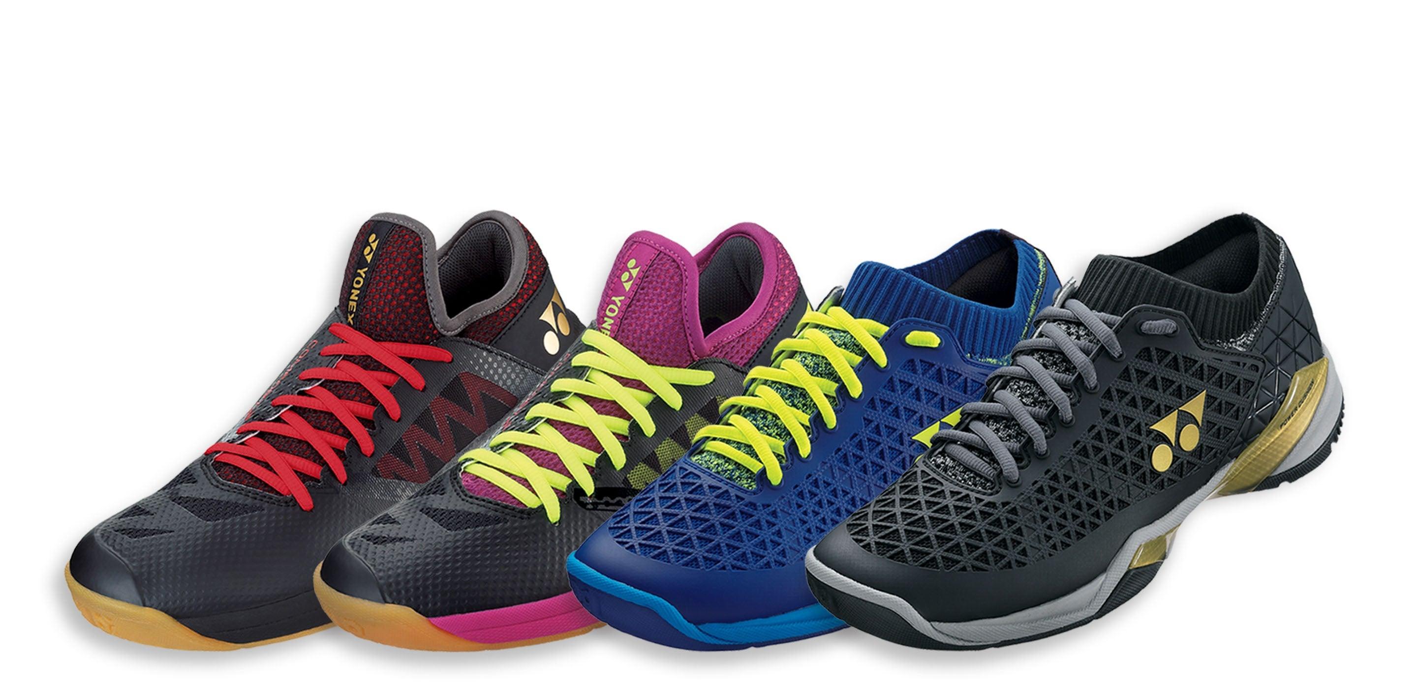 Badmintonschoenen behoren tot de schoenen die de meeste krachten moeten ondergaan door de explosieve natuur van het spel. De naden en het materiaal moeten aan de hoogste kwaliteit voldoen om te weerstaan aan slijtage en trekkrachten. Om perfect voetenwerk te hebben, moeten de schoenen voldoen aan uitzonderlijke grip op de court, bescherming geven aan de sporter en zo licht mogelijk zijn.