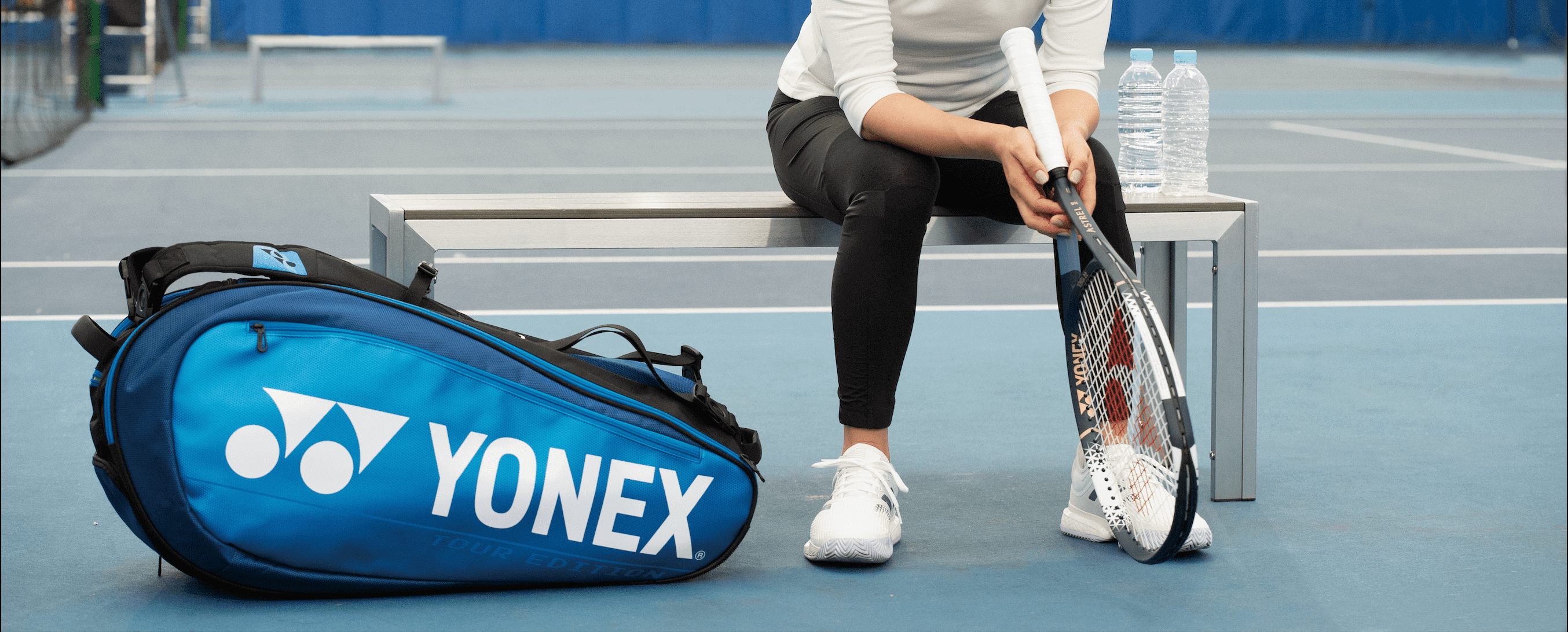Racketbags zijn een essentieel onderdeel van de uitrusting om al de nodige spullen in te vervoeren. De tassen van Yonex zijn zo ontwikkeld dat ze comfortabel zijn om te dragen en groot genoeg om al de nodige zaken mee te nemen. Er kan een onderverdeling gemaakt worden naargelang het type tas. De specifieke racketbags zijn er in verschillende maten die aangeven voor hoeveel rackets er plaats is. Speciaal voor de rackets zit er in de tassen een thermoguard om de temperatuur van de rackets constant te houden. Naast rackets heb je in deze tassen ook plaats voor kleren en een individueel vak voor schoenen. Verder zijn er ook de rugzakken met een speciale afsluiting om een racket in te dragen. Trolleys en tournament tassen zijn ook voorhanden, deze zijn groter en bedoeld voor spelers die veel materiaal meenemen.